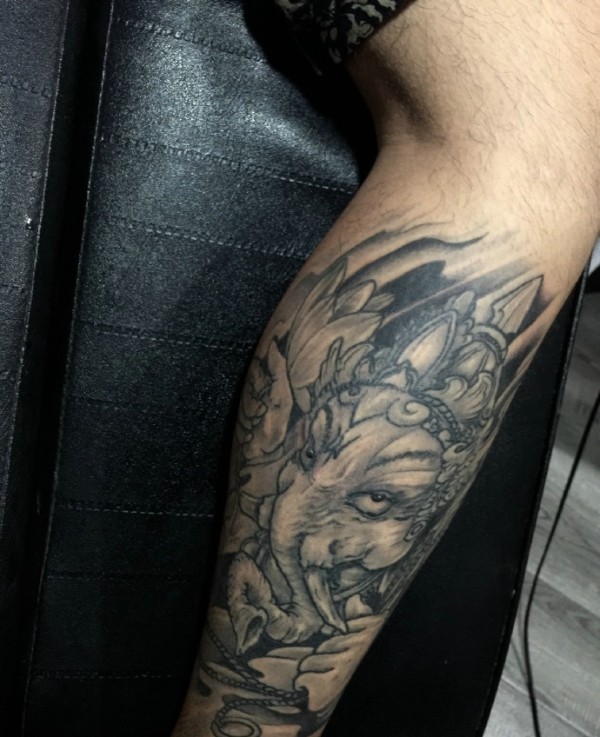 小腿上一款大象纹身图案_腿部纹身图案大全_纹身图吧