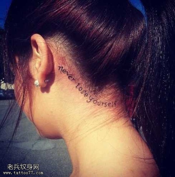 脖部英文纹身图案