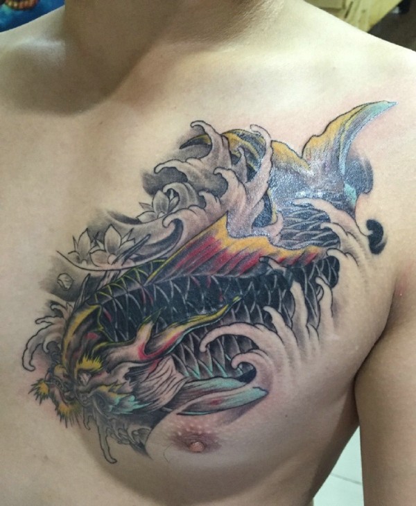 半彩鲤鱼纹身图案风度翩翩