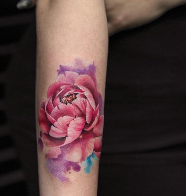 一套彩色的花儿在皮肤上盛开纹身刺青