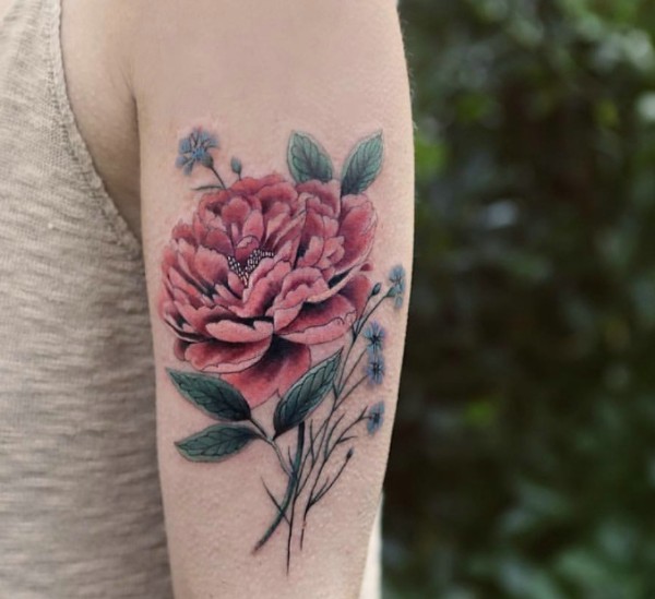 一套彩色的花儿在皮肤上盛开纹身刺青