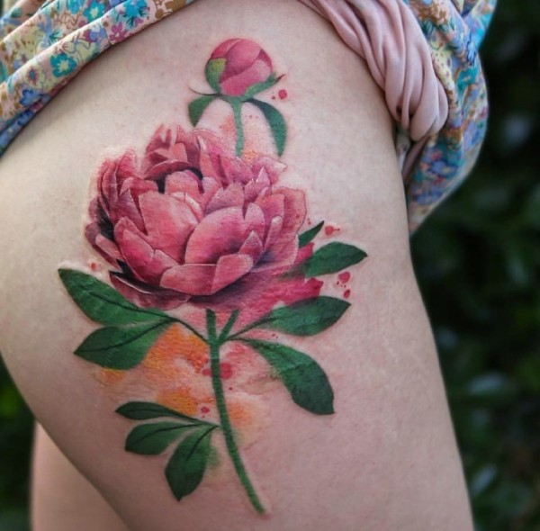 一套彩色的花儿在皮肤上盛开纹身刺青