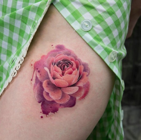 一套彩色的花儿在皮肤上盛开纹身刺青