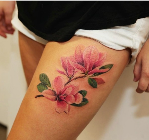 一套彩色的花儿在皮肤上盛开纹身刺青