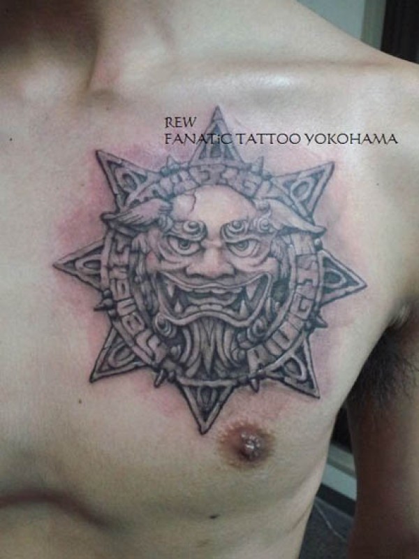 男人胸部太阳神纹身