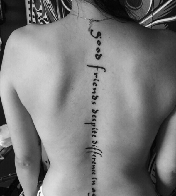 脊椎部优雅性感的英文纹身刺青