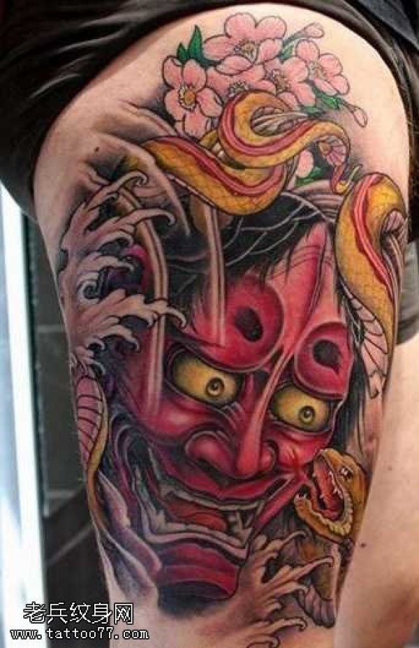 腿部红般若纹身图案