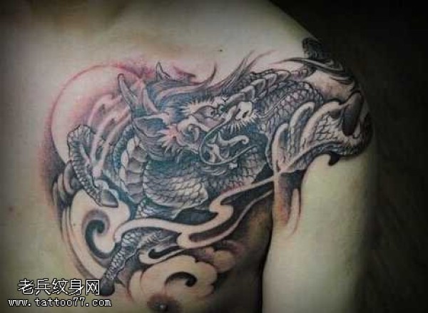 龙纹身手稿_一组老传统黑灰龙手稿纹身图案