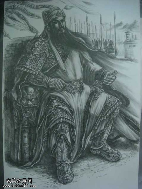 手稿坐关羽纹身图案