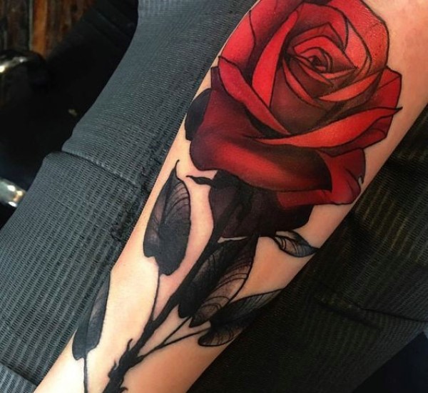 远处就能闻到香味的手臂玫瑰纹身刺青