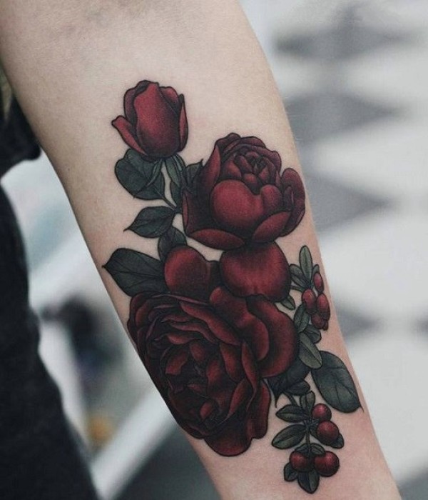 远处就能闻到香味的手臂玫瑰纹身刺青