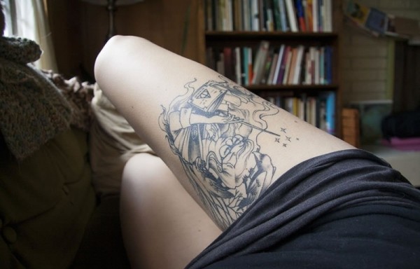 花腿纹身--一组大黑腿纹身图案作品欣赏