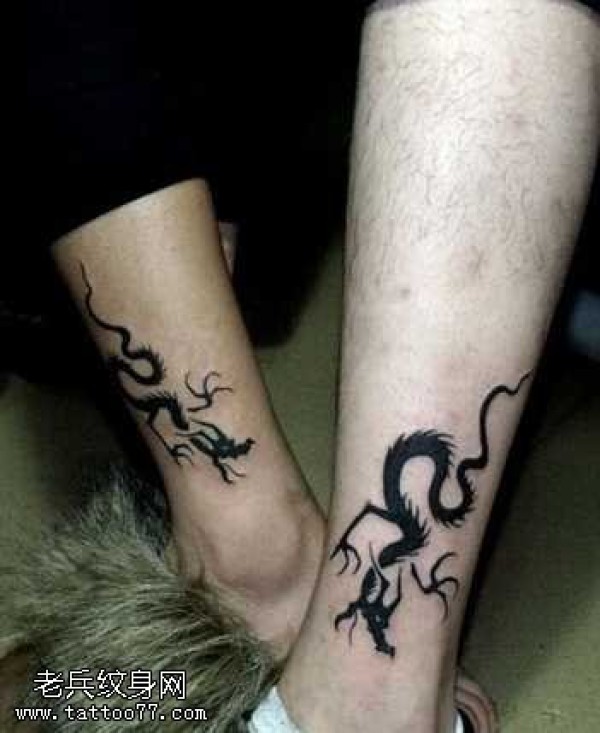 腿部龙图腾情侣纹身图案