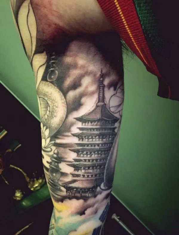 手臂莲花蛇纹身图案_臂部纹身图案大全_纹身图吧