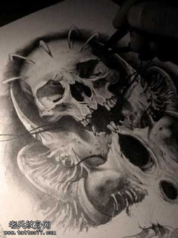 龙纹身手稿_一组老传统黑灰龙手稿纹身图案