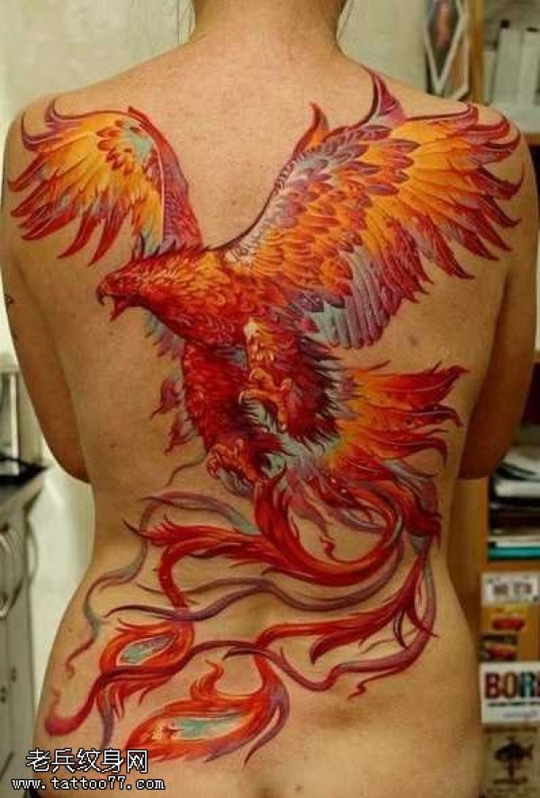 满背个性火凤凰纹身图案