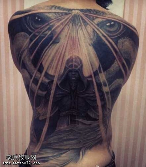 满背天使眼睛纹身图案