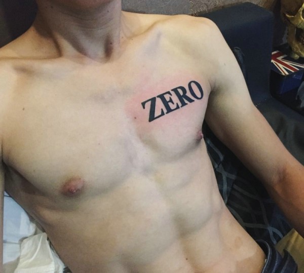 胸前简单单一的英文单词纹身刺青