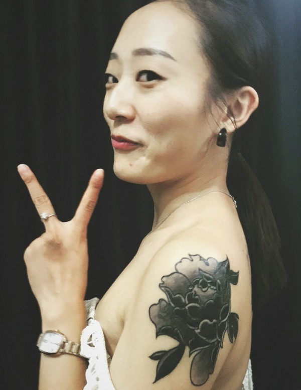 女生肩花纹身_15张女性双肩对称的肩花纹身图案作品图片