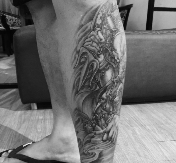 腿部鳌鱼纹身图案_腿部纹身图案大全_纹身图吧
