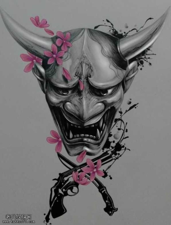 能面万媚纹身手稿_52张日式能剧面具纹身手稿图案素材欣赏