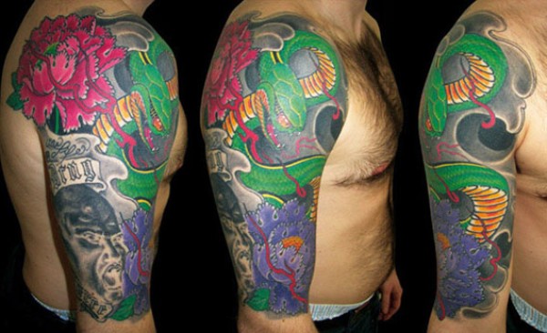 大蛇牡丹肖像纹身