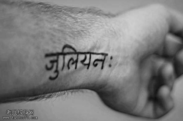 手腕小巧简洁的梵文纹身图案