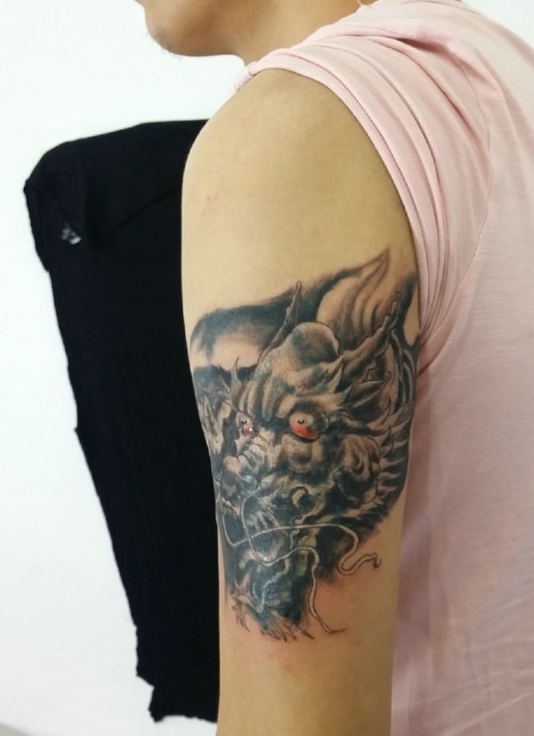 手臂邪龙龙头纹身图案也很不错