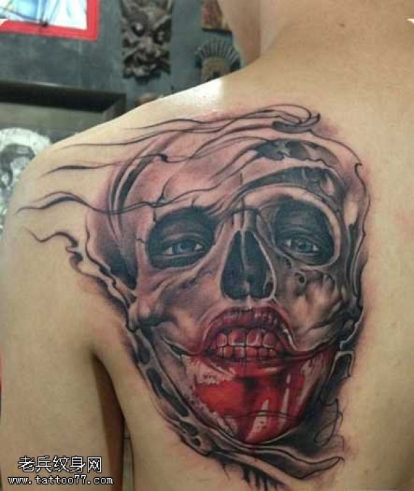 肩甲上的蜘蛛图案纹身_后背纹身图案大全_纹身图吧