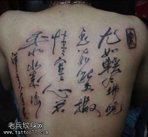 满背书法纹身图案