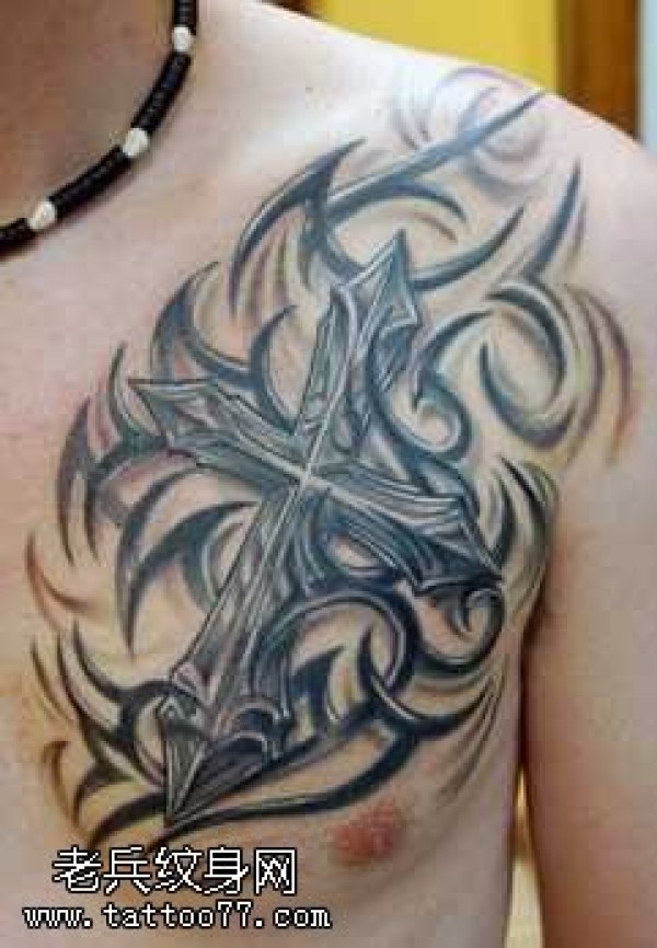 胸部十字架图腾纹身图案