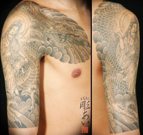 日式手彫刺青作品—半甲龙很感谢客户认可手彫刺青,手彫是日本纹身的手工雕刻技术,时间可以追溯到日本17世纪的江户时代。19世纪,手彫技术被日本黑帮挪用,被用作入会仪式,象征着从此就是江湖中人。在日式传统