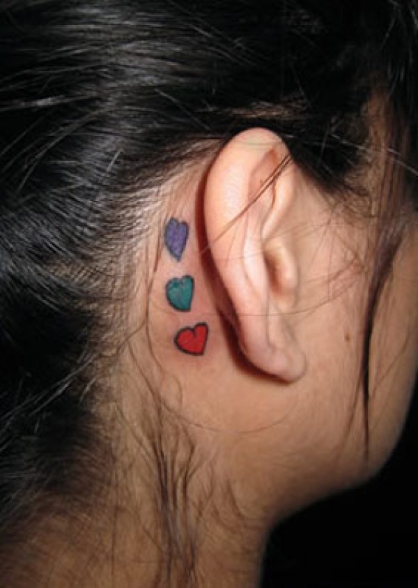 耳后彩色心形图腾纹身