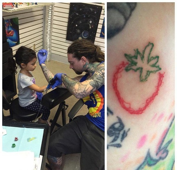 布拉德和女儿一起制作纹身,和她的纹身图案