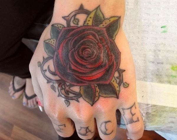 40款满手背玫瑰花纹身图案