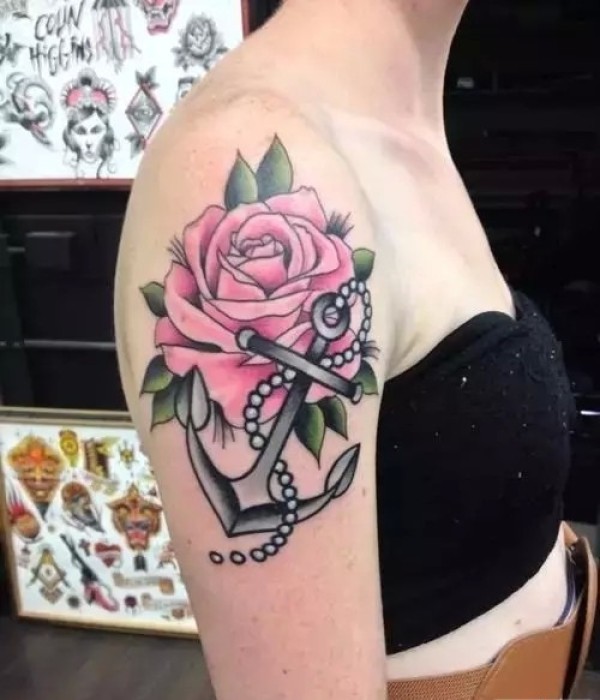 一套大气时尚的船锚纹身