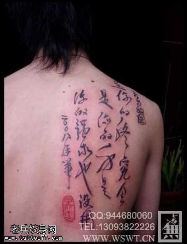 满背书法纹身图案