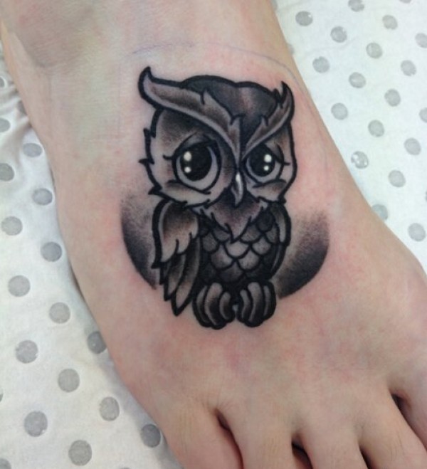 超级萌化的黑色点刺猫头鹰纹身图案