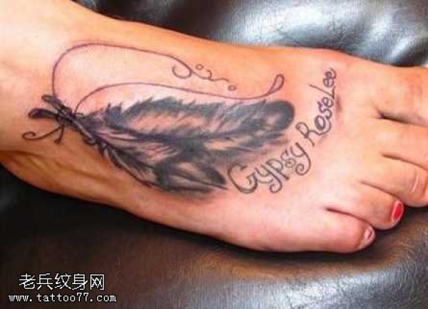 脚部漂亮小巧羽毛纹身图案