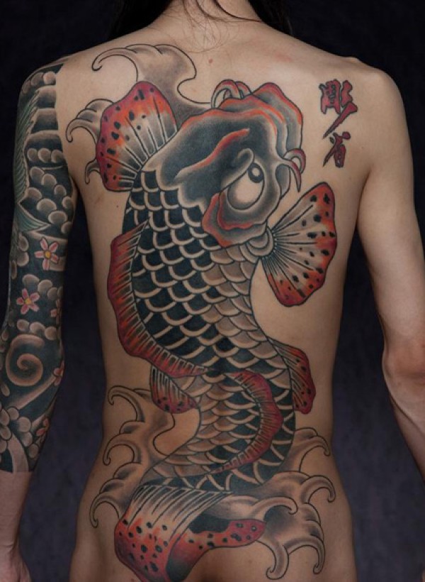 日式风格满背鲤鱼纹身