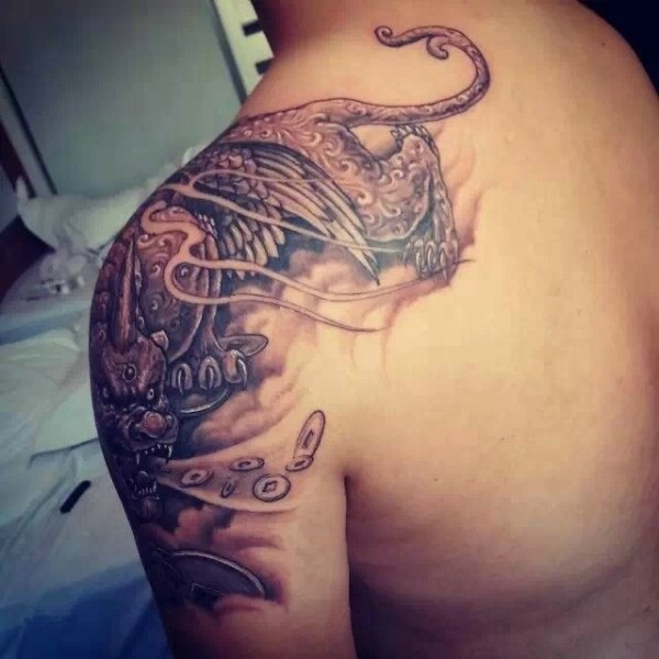 龙纹身手稿_一组老传统黑灰龙手稿纹身图案
