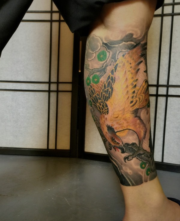日式风格的传统花腿纹身作品欣赏