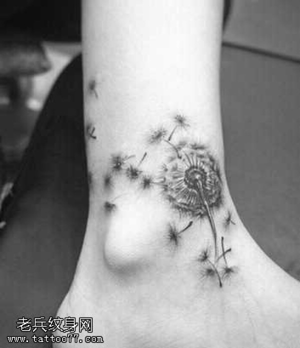 脚部黑灰薄公英纹身图案