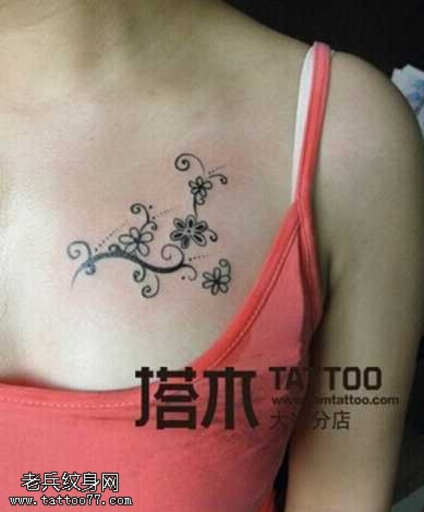 胸前花朵小清新纹身图案