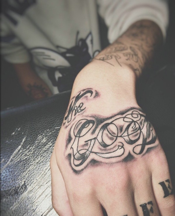 手背非主流花体英文纹身刺青