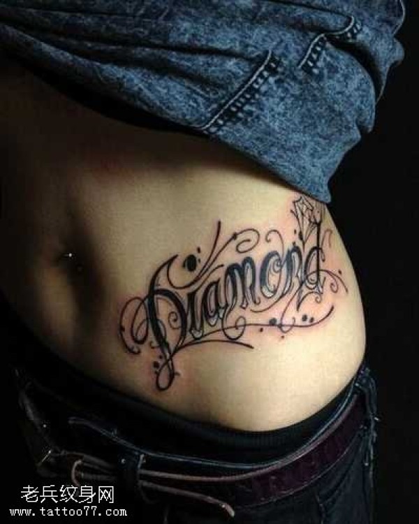 腹部花英文纹身图案