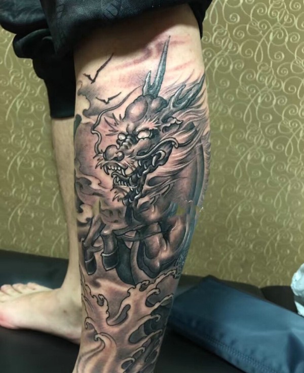 花腿纹身--一组大黑腿纹身图案作品欣赏