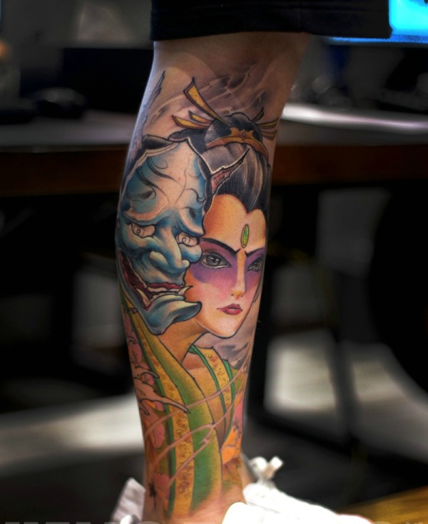 传统花腿纹身--18张传统风格的大花腿纹身图案作品