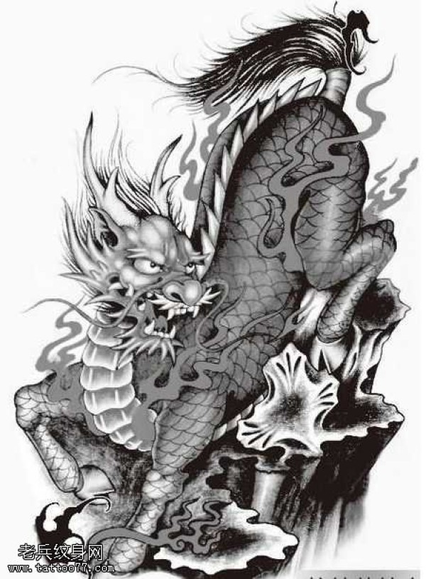 龙纹身手稿_一组老传统黑灰龙手稿纹身图案