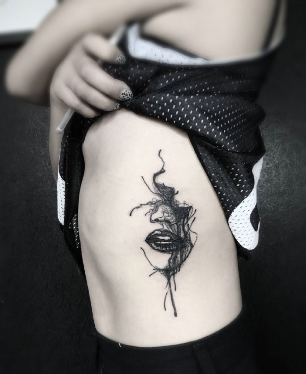 侧腰霸气老虎头纹身_腰部纹身图案大全_纹身图吧